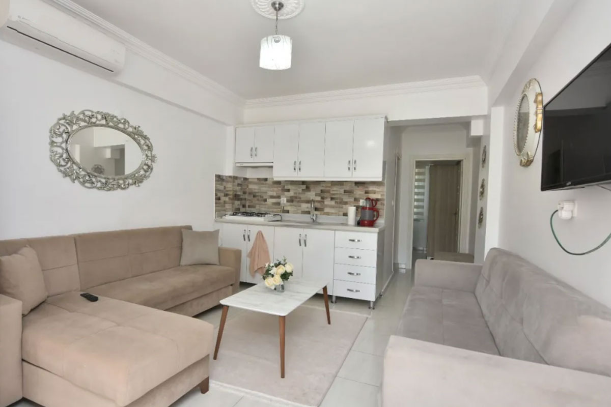 Açık mutfakla birleşen geniş salonlarımızda oturma grubu, klima ve LED TV ile tüm konuklarımıza rahat bir yaşam alanı sunuyoruz. Tatil boyunca kendinizi evinizde hissedeceksiniz.